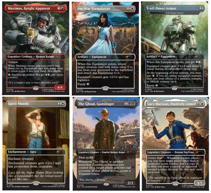 For the first time, the survivors from Prime Video’s Fallout series make their debut with new-to-Magic designs. Lucy MacLean brings her optimism to the battlefield with The Golden Rule, a once-per-turn ability that lets you trade token favors for card draw. The Ghoul feeds on death itself, stacking up Rad counters to mill or wipe out opponents—or, if you’re feeling bold, take that radiation yourself for extra resources. And Maximus, ever the true believer, turns scrap into strength, fueling up on Energy as he powers up his own T-60 Power Armor.