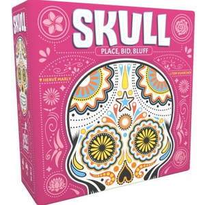 Skull & Roses is the quintessence of bluffing, a game in which everything is played in the players' heads. Each player plays a face-down card, then each player in turn adds one more card – until someone feels safe enough to state that he can turn a number of cards face up and get only roses. Other players can then overbid him, saying they can turn even more cards face up. The highest bidder must then turn that number of cards face up, starting with his own. If he shows only roses, he wins; if he reveals a skull, he loses, placing one of his cards out of play. Two successful challenges wins the game. Skull & Roses is not a game of luck; it's a game of poker face and meeting eyes.