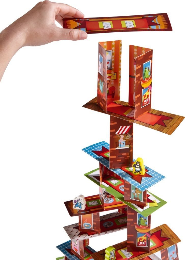Rhino Hero is back on the job — and this time not only does the wobbly skyscraper need to be climbed, but there will also be fierce battles between the four super-heroes Rhino Hero, Giraffe Boy, Big E. and Batguin. Who will win the battles and not let themselves be bothered by the mean, hanging spider monkeys?