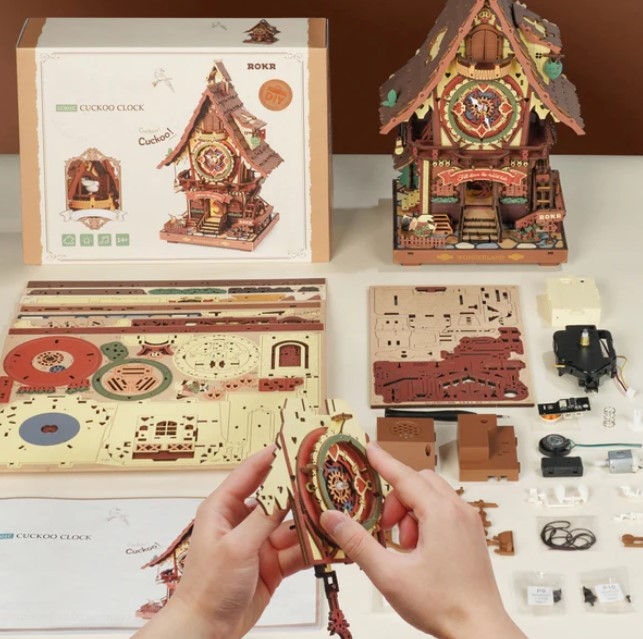 Telling the time is both easy and entertaining with the ROKR Cuckoo Clock. With a woodland cottage design and recognizable elements from fairy tales, this DIY puzzle clock is a feast for the eyes and the imagination.
