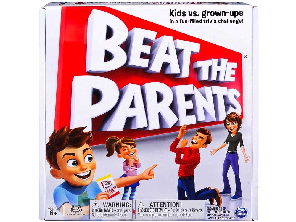 Beat the Parents brings kids together with their parents to go head-to-head in a fun-filled family trivia game. Prove who's the boss in the game where the adults answer questions about kids' stuff, and the kids answer questions their parents should really know. The first team to get both movers across the board to the other sides start spaces wins the game!