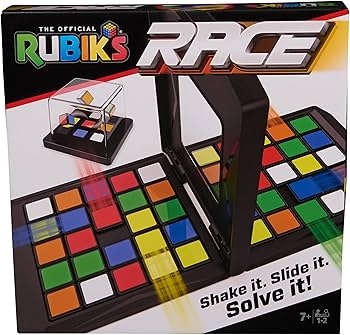 Rubik’s Race is a fast-paced game for two players to get your brain and fingers racing! Shake the scrambler and go head to head with your opponent to shift and slide the tiles to be the first to make the 3×3 center match the pattern. It sounds easy, but the Rubik’s Race is a real game of skill, speed, and dexterity. Challenge your friends and family to a Rubik’s Race!