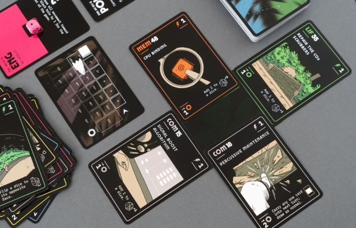 Your challenge in Lux Aeterna is to draw and play all of the cards in the main deck, one turn after another, without the spaceship collapsing completely or falling into the black hole. Cards have multiple functions; you will assign drawn cards to one each of these functions each turn: