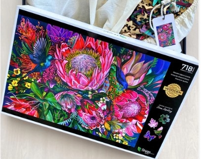 This magnificent original artwork from Jana Aspeling, at 718 pieces, is Twigg's largest piece count puzzle yet! I think you will love the build as well as it is challenging and beautiful at the same time.