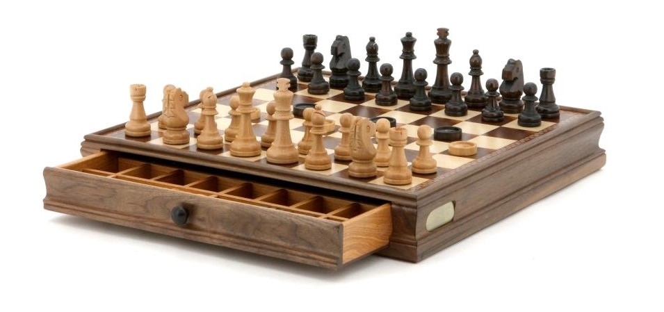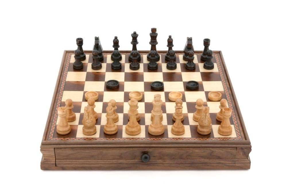 Introducing the Dal Rossi Chess/Checkers Set, a timeless and elegant addition to your gaming collection. Encased in a luxurious walnut box, this set is not just a game but a piece of art that exudes sophistication. With meticulous attention to detail, Dal Rossi has crafted a chess set that seamlessly blends classic design with modern functionality.