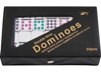 Dominoes - Double 9 with Coloured Dots in Vinyl Case